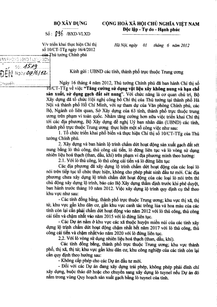 Công văn bộ xây dựng tăng cường sử dụng vật liệu không nung và hạn chế sản xuất và sử dụng gạch đất sét nung