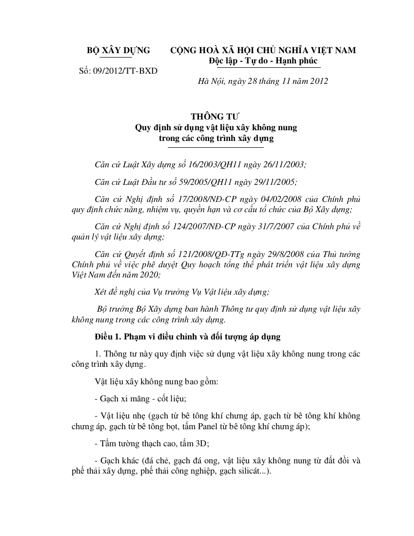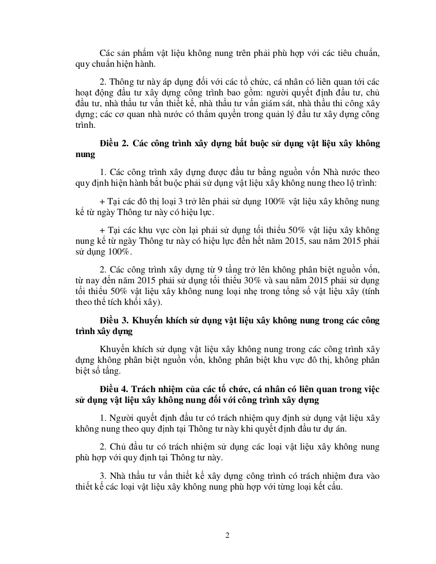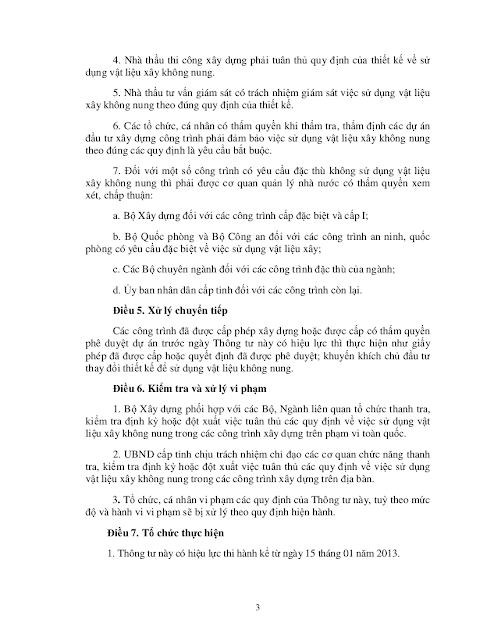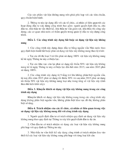 Thông tư quy định sử dụng vật liệu xây không nung trong các công trình xây dựng